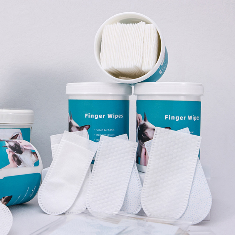 Lenços umedecidos extragrandes para as dedeiras de animais de estimação, com alto teor de algodão e textura perolada, para uma limpeza suave e eficaz dos olhos, ouvidos e boca. Embalagem e fórmulas personalizadas para cães e gatos. Opções de marca própria com baixo MOQ.